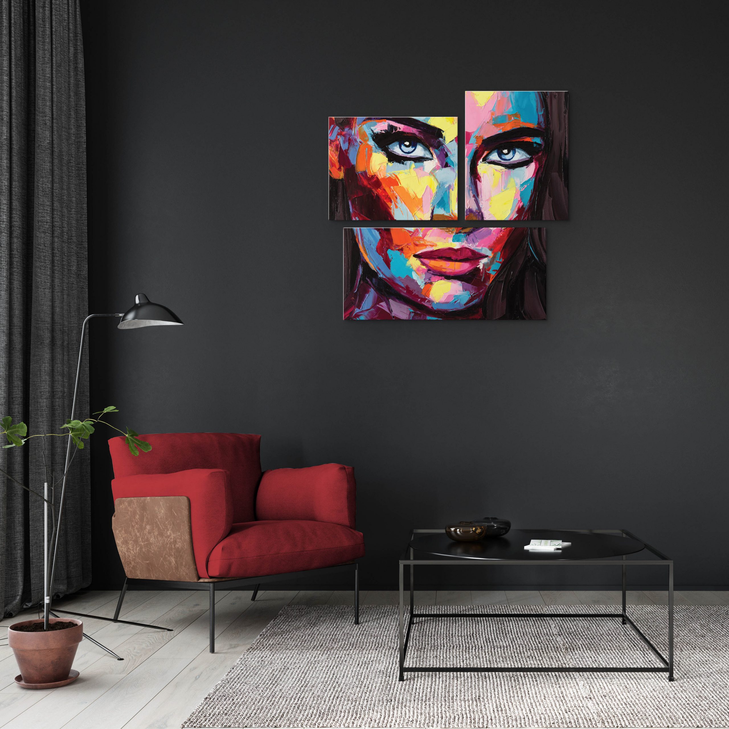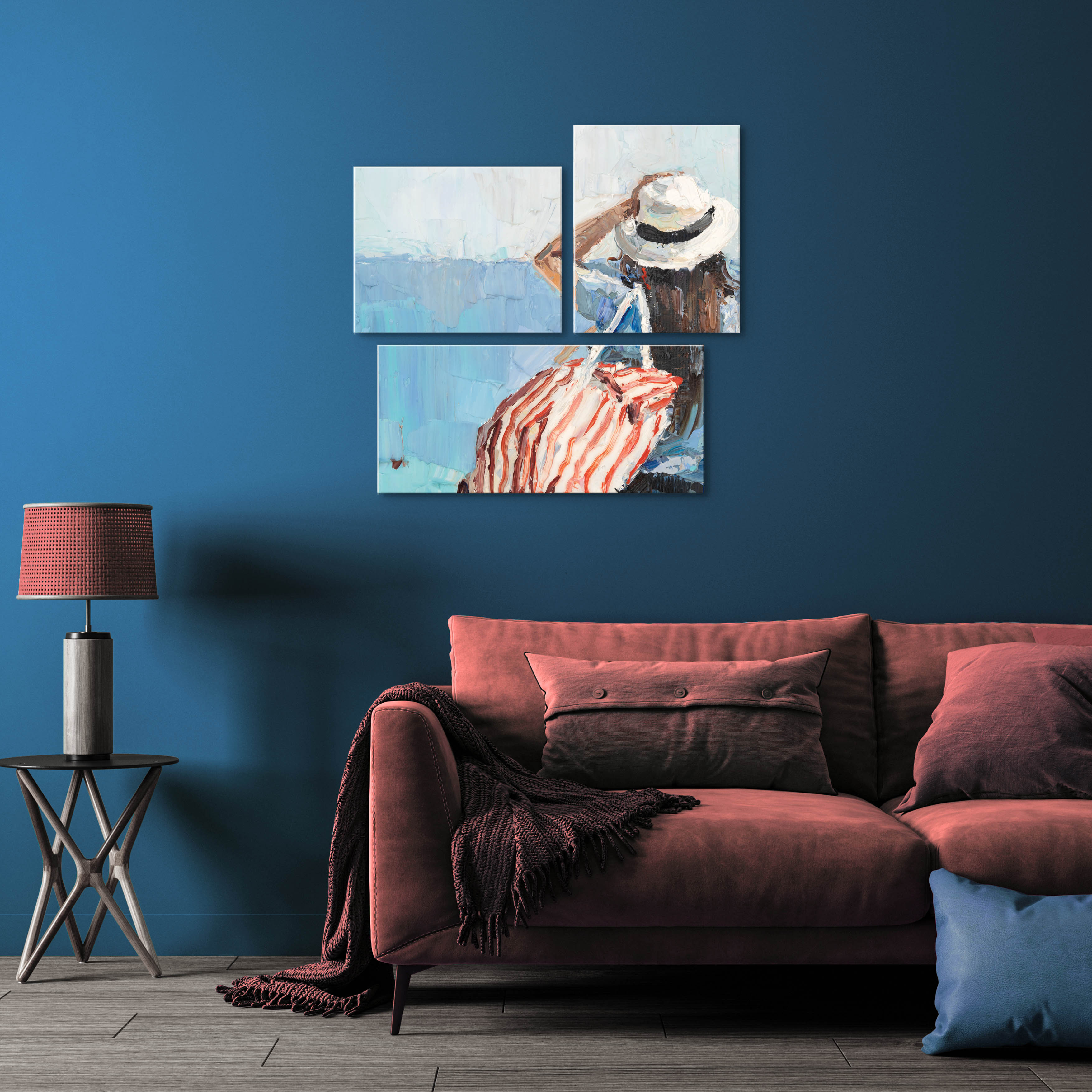 Διακοσμητικοί πίνακες με έργα καλλιτεχνών σε ύφασμα.